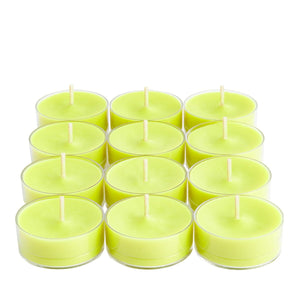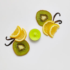 Kiwi Sunshine is a powerful & bold fruity infusion of juicy green melon, tart yellow lemon and tangy kiwi. Go on a sunny escape with our 12-pack of tealights and create a soft aromatic ambience in your home.